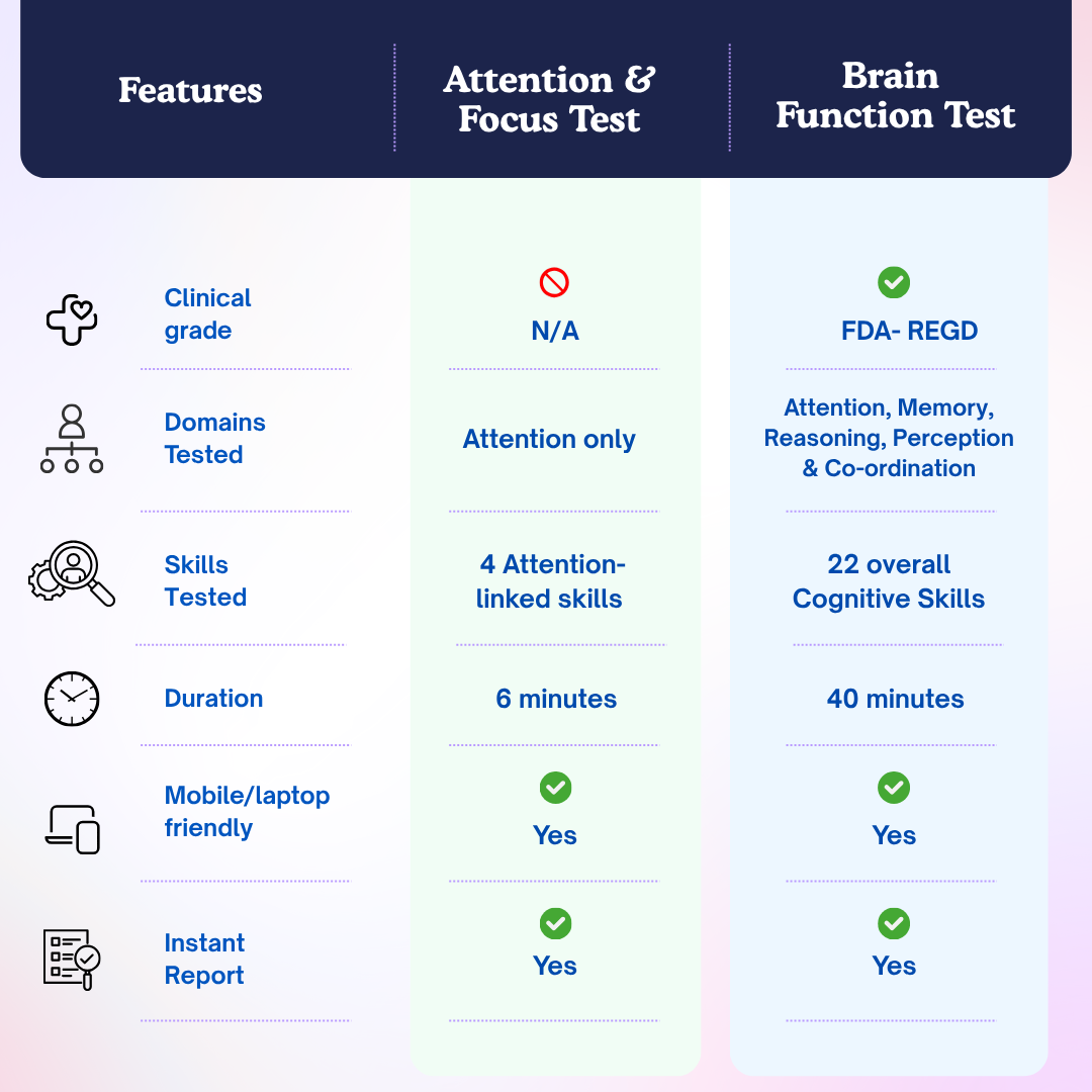 Doing a periodic Cognitive Profiling will help you understand more about your Brain Health and Cognition, especially post the age of 40.